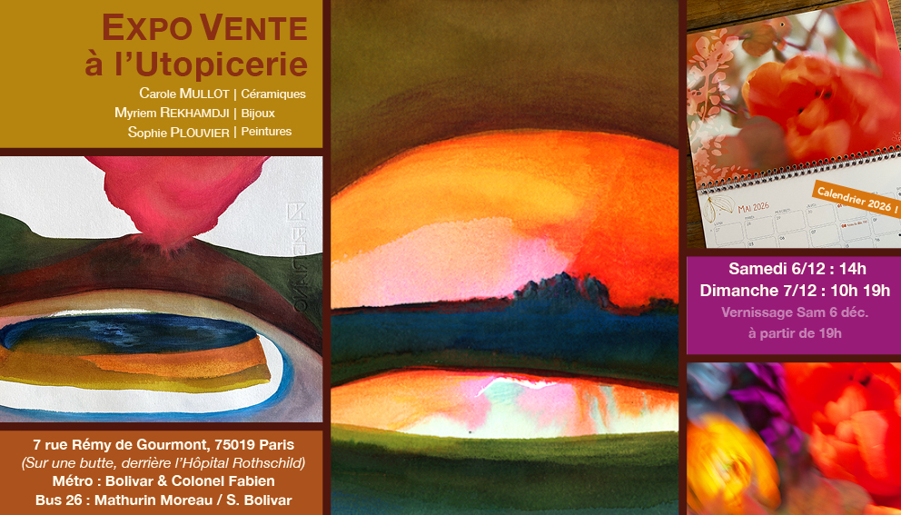 Ma prochaine expo est les 6 & 7 décembre 2025 à l’Utopicerie (Paris 19)